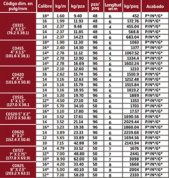 TUBERÍAS CUADRADAS TUBULARES DE LÁMINA DE ACERO, LARGO ESTÁNDAR 6.00m, EXCEPTO CAL. 7 Y 1/4" A 6.10m