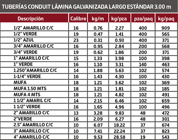TUBERÍA CONDUIT LÁMINA GALVANIZADA LARGO ESTÁNDAR 3.00m