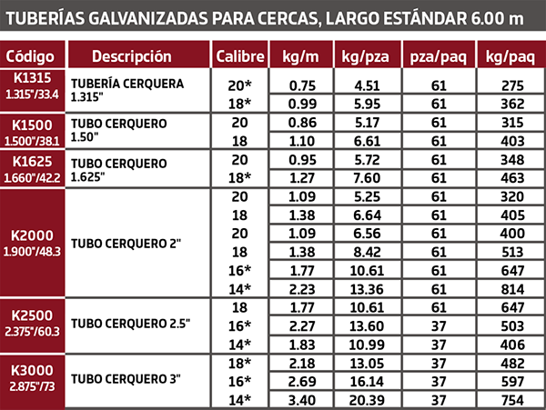 TUBERÍA GALVANIZADA PARA CERCAS